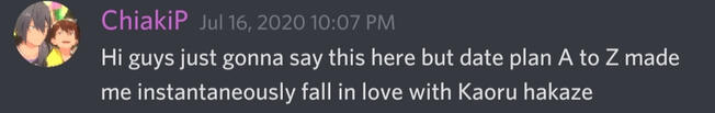 7/16/20: I reach Day 5 of the tour event and listen (and play) Date Plan A to Z for the first time. I think to myself huh this is a cute song i'll give it a listen later. I give the full version a listen later that night. It changed my life.