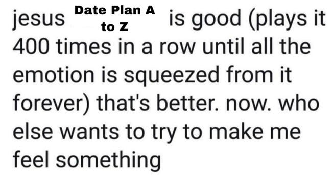 The rest of July: I spend nights just listening to Date Plan A to Z on loop, staring at my ceiling in complete darkness. It's the only thing that made me feel during that time.