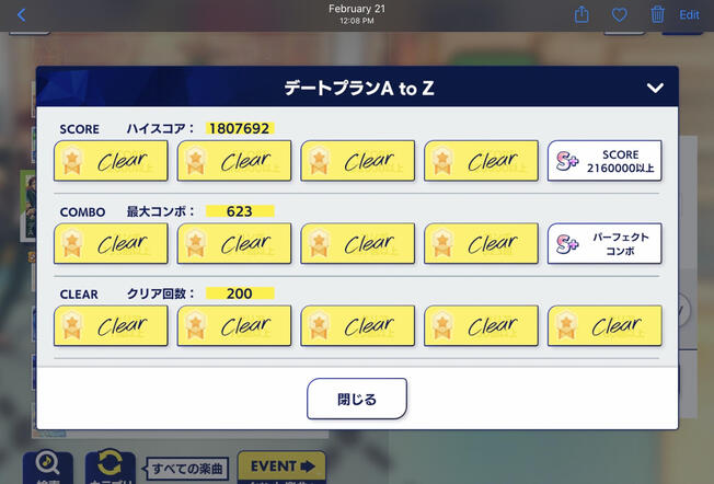 2/21/21: 200 plays on Date Plan A to Z on my main account... it'd be more but my glitter team sucked (and still sucks).